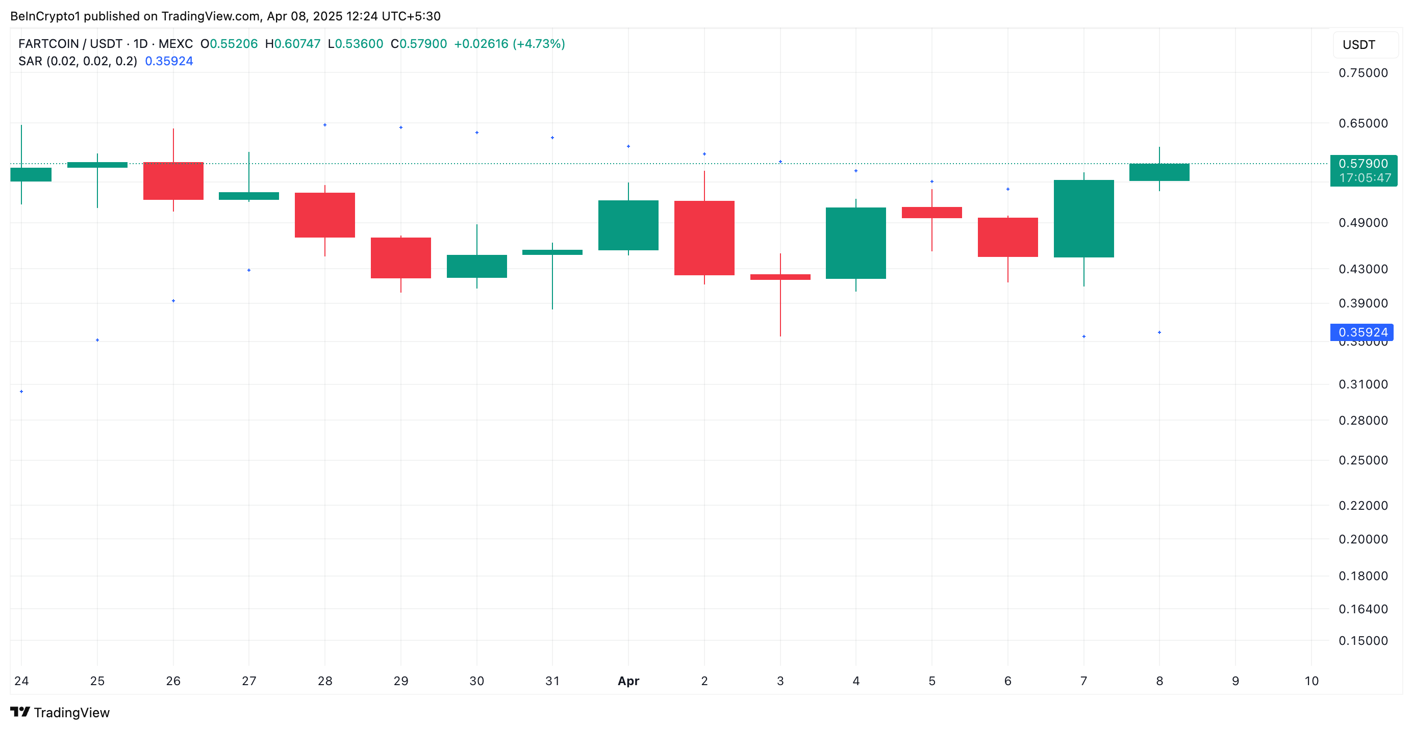 SponsoredSelain itu, pengaturan indikator Parabolic Stop and Reverse (SAR) token mendukung pandangan bullish ini. Pada saat penulisan, titik-titik indikator momentum berada di bawah harga FARTCOIN pada grafik harian.