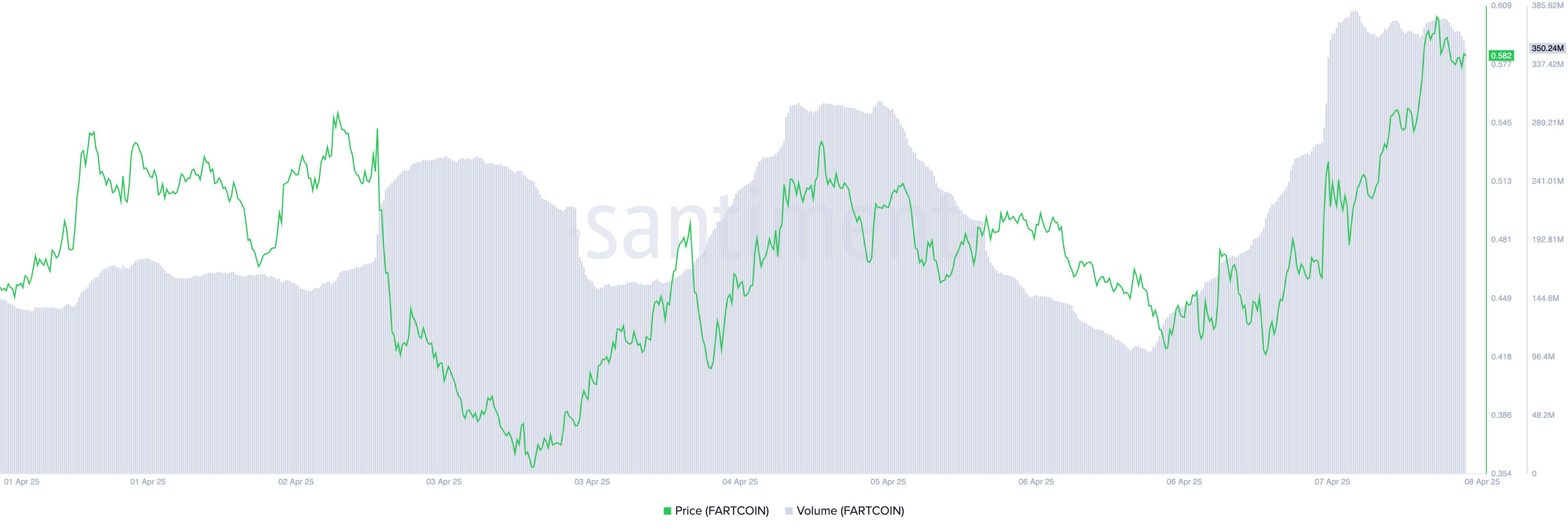 Volume perdagangan FARTCOIN mencapai US$363 juta pada saat penulisan, melonjak lebih dari 80% dalam 24 jam terakhir.