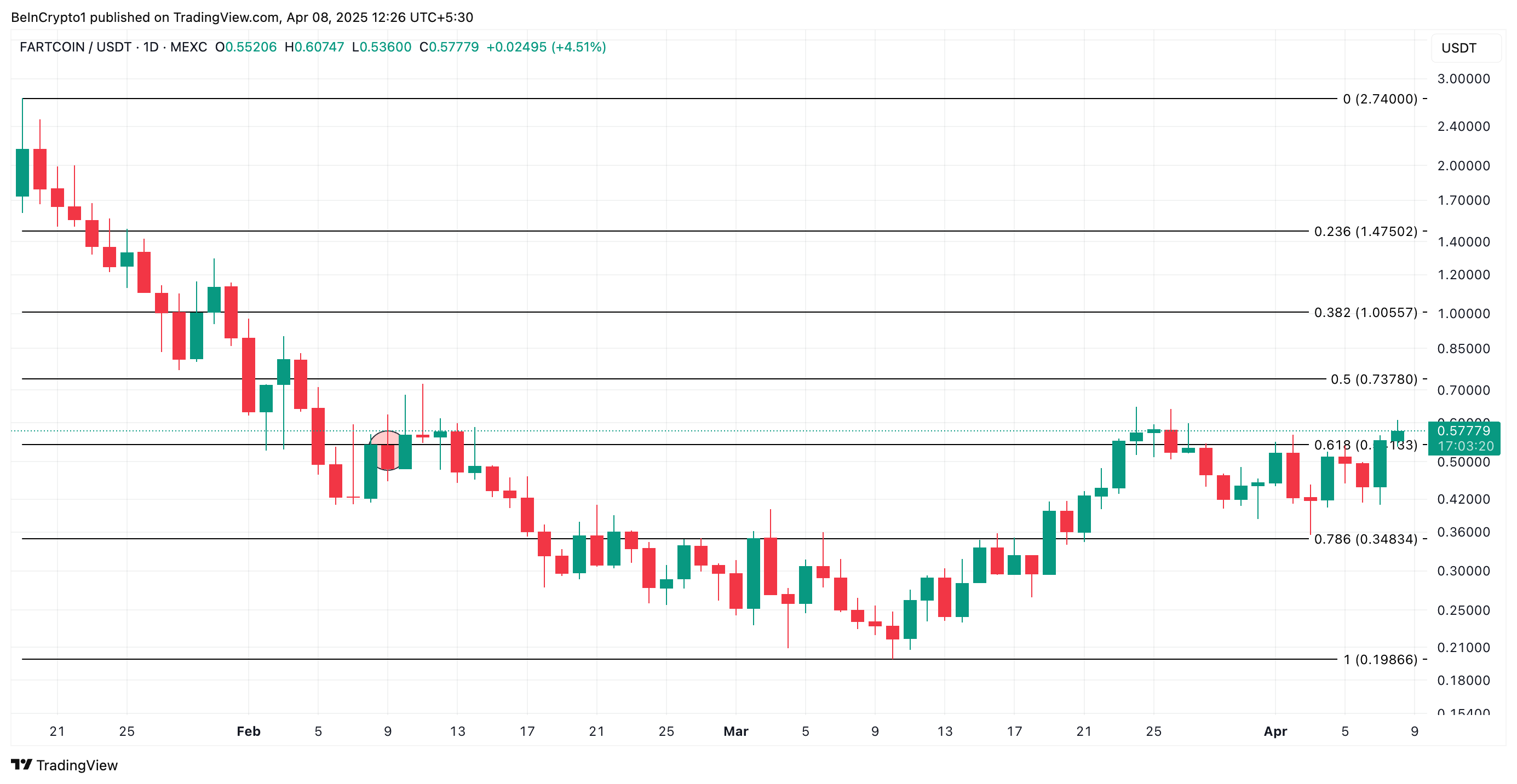 Dalam skenario tersebut, harga FARTCOIN bisa naik ke US$0,73.