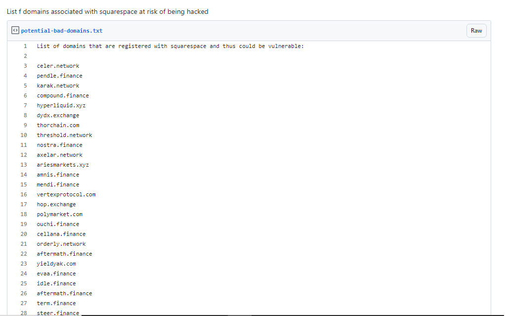 SponsoredSetidaknya terdapat 128 domain yang diduga terkena dampak dari peretasan yang me-redirect penggunanya ke laman phishing. Namun demikian, jumlahnya kemungkinan bisa lebih banyak dari itu, mengingat 0xngmi menyebut bahwa daftar tersebut baru sebagian dari domain yang terhubung ke Squarespace.