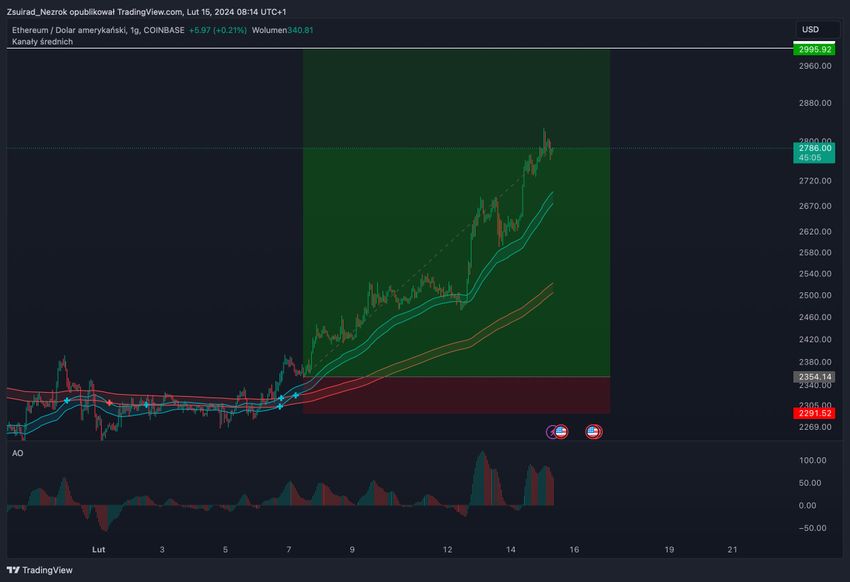 Pada bulan Januari 2024, ETH sukses mencetak puncak harga US$2.717, namun kemudian harus tertolak oleh bagian tengah kisaran (ikon merah).