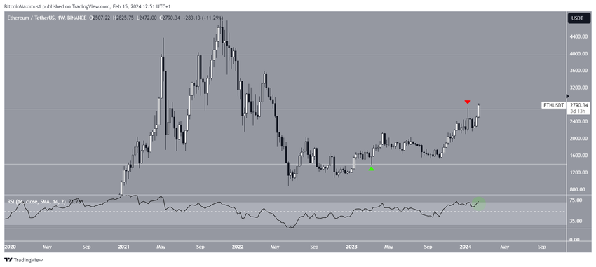 Meski demikian, ETH kembali melancarkan percobaan breakout pekan ini. Lalu, kemarin, ETH berhasil menyentuh puncak tahunan baru di angka US$2.825. Namun, sejak saat itu, harganya belum sanggup mencapai penutupan mingguan di atas bagian tengah kisaran.