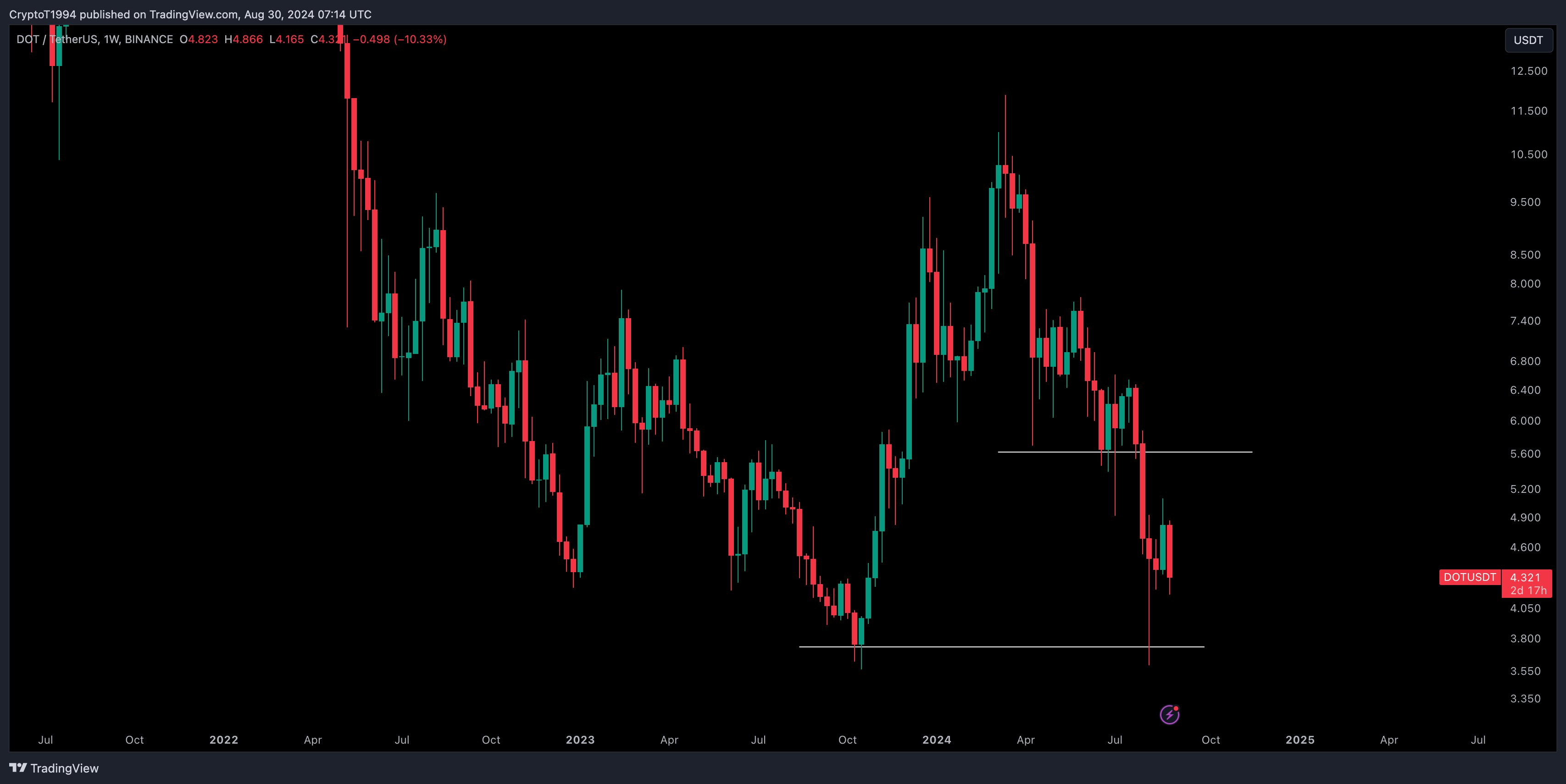 Menilai halaman sang analis, terungkap bahwa fokus utamanya adalah pada Bitcoin (BTC). Altcoin seperti Ripple (XRP), serta meme coin teratas, menjadi bagian dari analisis yang Tony suguhkan. Dalam sebuah postingan baru-baru ini, sang trader membagikan proyeksinya terkait Polkadot (DOT).
