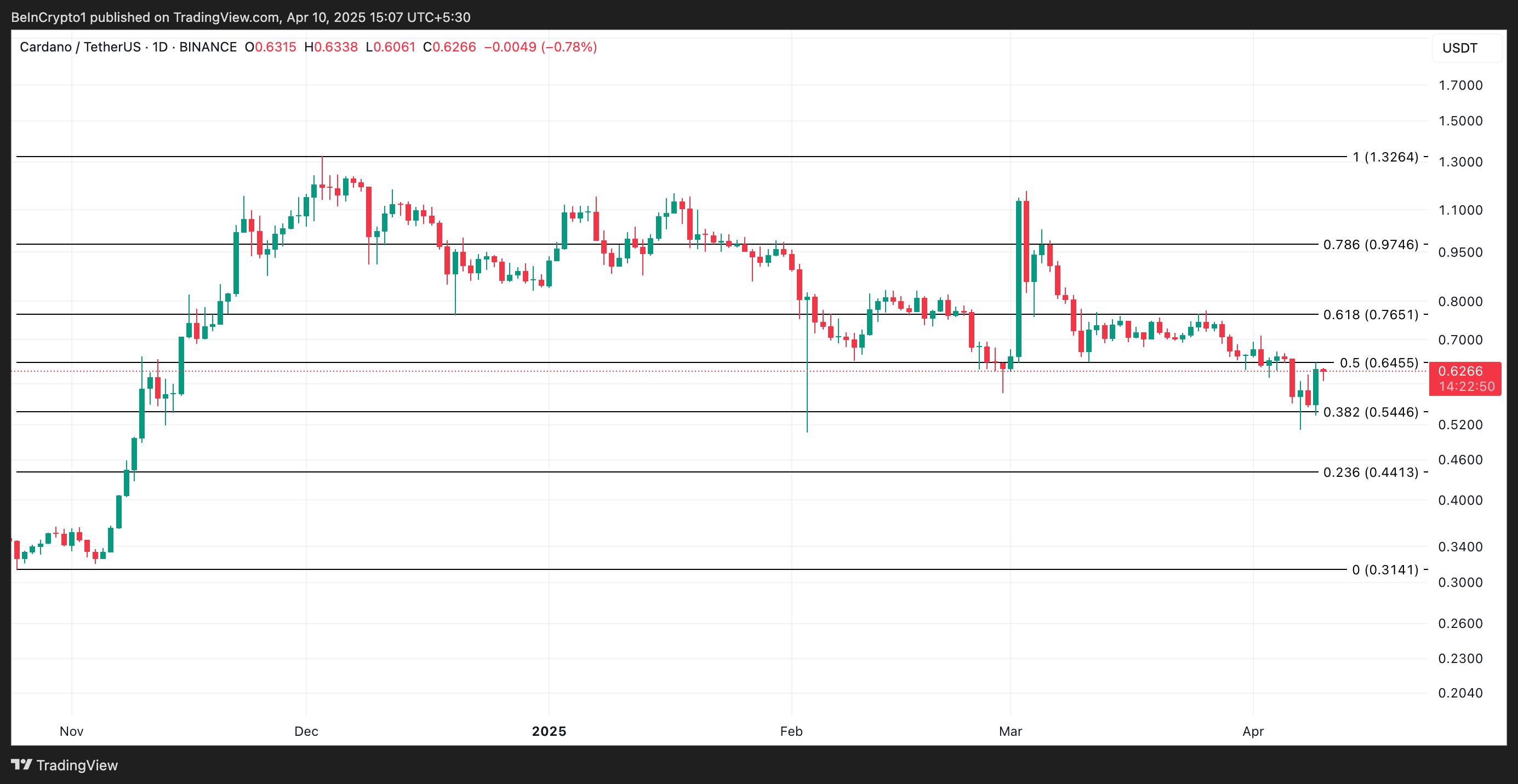 Namun, jika ADA kehilangan momentum bullish-nya, harganya bisa terkoreksi ke kisaran US$0,54.