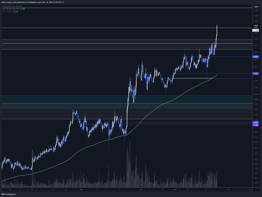 Harga RNDR telah mengukir lonjakan bullish yang mengesankan tahun ini. Sejak Januari, harganya telah melambung sebesar 1.100%. Tren naik ini bahkan berhasil membawa RNDR ke puncak tahunan yang baru di angka US$4,87 kemarin. Dengan demikian, ini menjadi rekor harga tertinggi selama lebih dari 700 hari terakhir dan sekaligus merupakan puncak tahunan baru untuk RNDR.