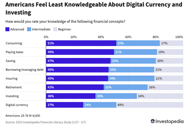Survei Literasi Keuangan Investopedia 2022 mengukur literasi keuangan orang dewasa AS. Survei ini dilakukan melalui kuesioner online yang dikelola oleh Investopedia antara 27 Januari – 7 Februari 2022.