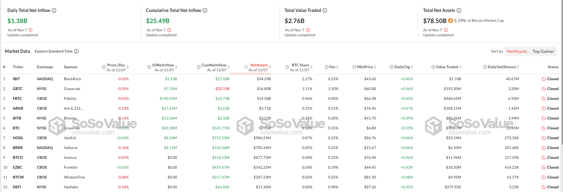 Balchunas mengutip analis ETF lainnya, Todd Sohn, yang menyebut ini sebagai “katup pelepas pasca-pemilu.” Dalam kejutan, ETF Bitcoin tidak terlihat dalam daftar pemenang terbesar ini. Namun, mereka masih masuk dalam kategori aset berisiko dan secara independen menunjukkan tanda-tanda sangat bullish.