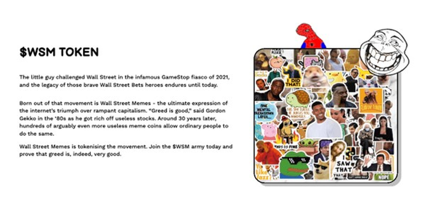 Wall Street Memes, yang menyatakan diri sebagai juara “orang kecil”, adalah koin meme yang saat ini mengguncang status quo di pasar kripto.