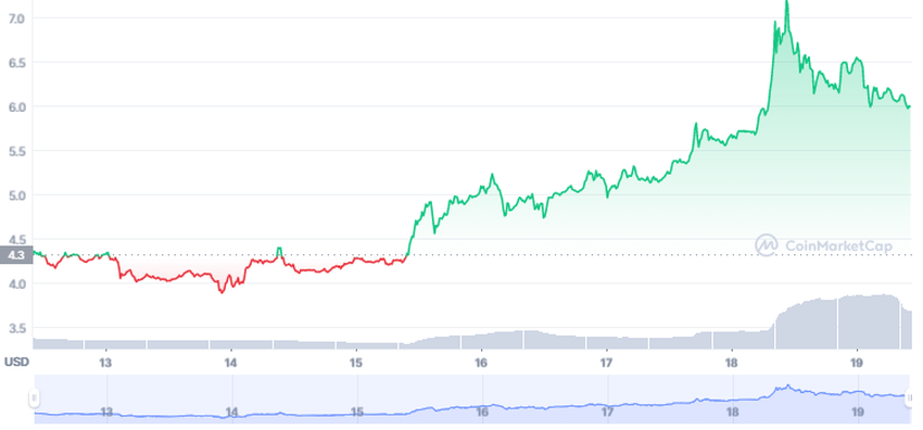 Terakhir adalah fan token milik tim nasional Argentina, yaitu $ARG. Token ini sudah meningkat 32% selama periode yang sama. Pada tanggal 14 November, $ARG diperdagangkan seharga US$6. Lalu, harganya naik jadi US$9,05 selang 4 hari kemudian.