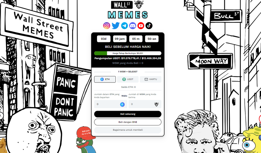 Pada saat artikel ini ditulis, presale Wall Street Memes telah mengumpulkan lebih dari US$11,2 juta, dengan investor dapat membeli token $WSM seharga US$0,0304.