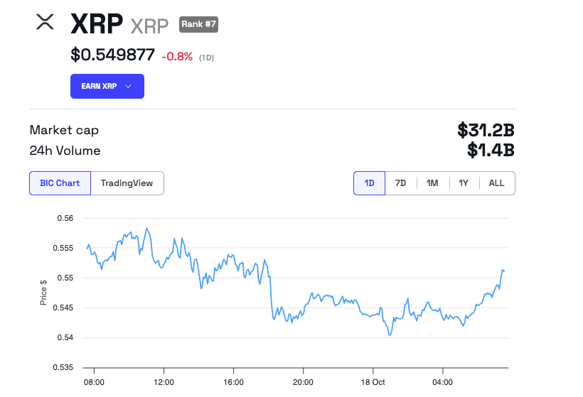 Di tengah ketidakpastian ini, harga XRP stabil. Dalam 24 jam terakhir, token ini turun hanya 0,8%, dengan harga perdagangan saat ini sebesar US$0,5498.