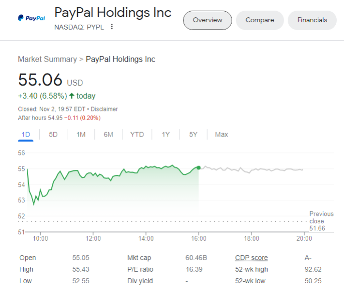 Meskipun tengah menghadapi tekanan dari regulator, publik tetap bereaksi positif terhadap kinerja PayPal secara keseluruhan. Harga saham PayPal (PYPL) pada perdagangan kemarin (2/11) tetap melesat ke level US$55,06.