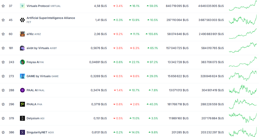 Adapun mengenai pasar, terpantau juga ikut dalam tren ini. Sebagai contoh, Virtual Protocol (VIRTUAL) mencatat kenaikan nilai sebesar 24% hanya dalam semalam, sementara aset kripto lain di sektor ini juga mengikuti jejak yang sama.