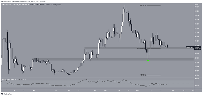 Sementara itu, indikator RSI hariannya berada pada level 50, yang berarti trennya netral. Oleh karena itu, apakah harga akan memantul di area tersebut dan menciptakan level higher low atau malah breakdown nantinya bisa menentukan arah tren di masa depan. Jika breakdown, kemungkinan akan mengkatalisasi penurunan ke level US$0,93. Sebaliknya, jika tercipta higher low, maka reli harga MATIC berpotensi akan berlanjut menuju harga tertinggi tahunannya di US$1,57.