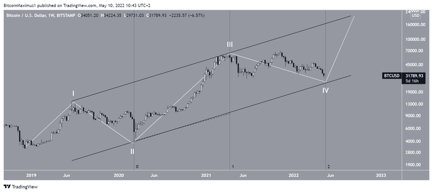 Perhitungan gelombang yang paling mungkin menunjukkan bahwa BTC berada dalam fase korektif jangka panjang, sejak mencapai titik all-time high di angka US$69.000 pada tanggal 10 November 2021.