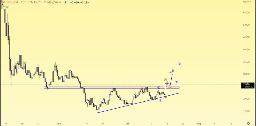 Analis teknikal @Altstreetbet telah membagikan sebuah grafik RUNE. Ia menyatakan bahwa harga RUNE telah memulai tren naik yang baru dan terdapat dorongan bullish menuju setidaknya level US$3,50.
