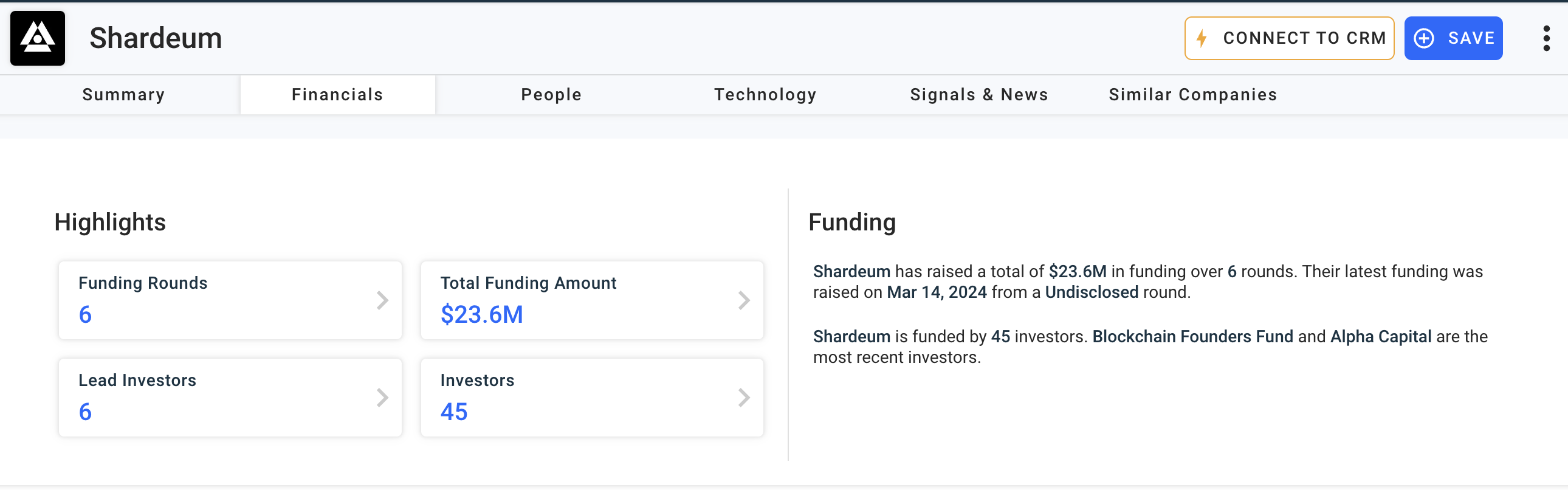 Menurut Crunchbase, Shardeum berhasil menggalang dana US$23,6 juta hingga saat ini. Barisan investor terkemuka meliputi Amber Group, Blockchain Founders Fund, dan Alpha Capital.