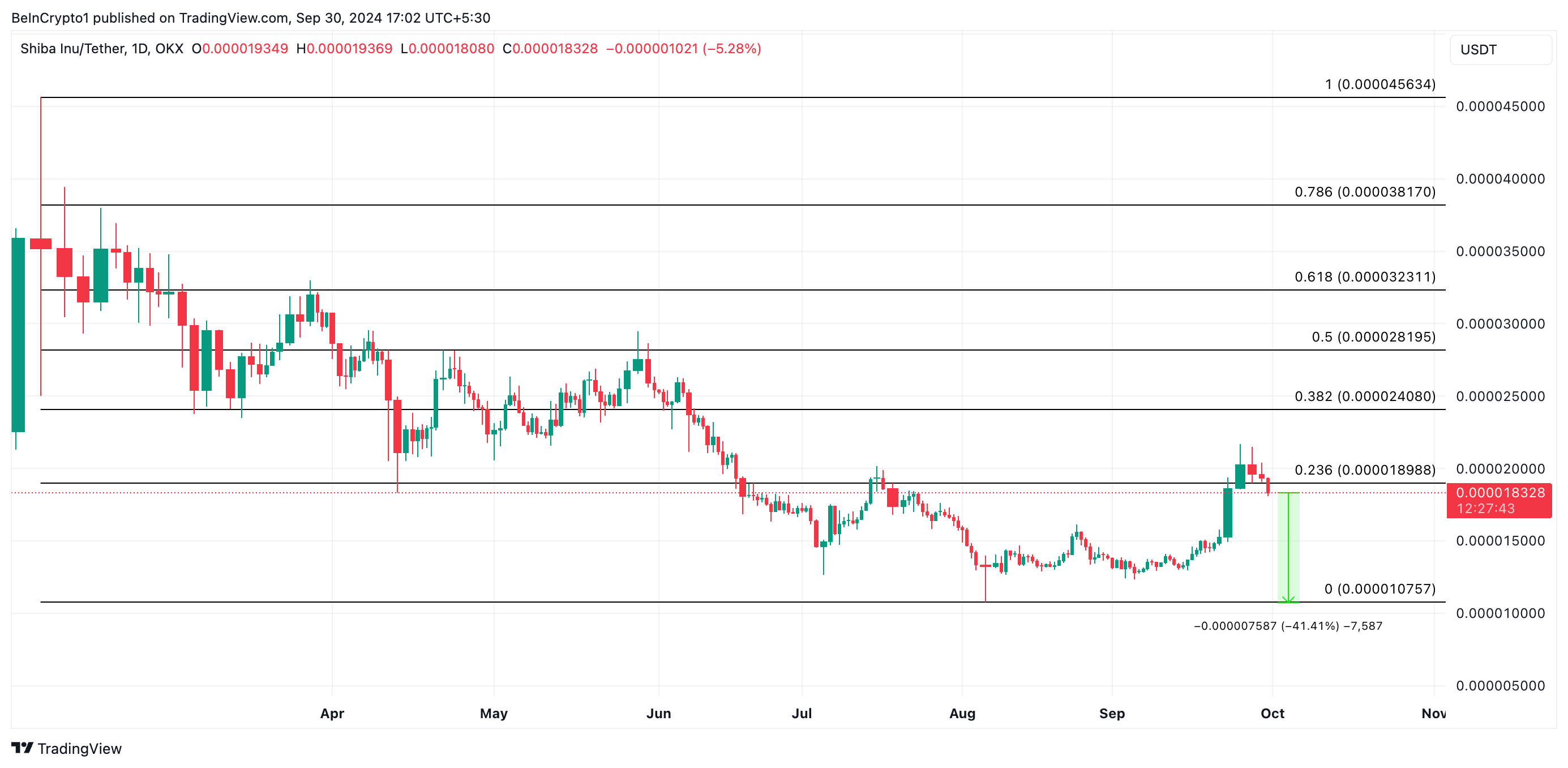 Dalam 24 jam terakhir, harga SHIB telah turun hampir 10%, dan diperkirakan akan terus menurun.