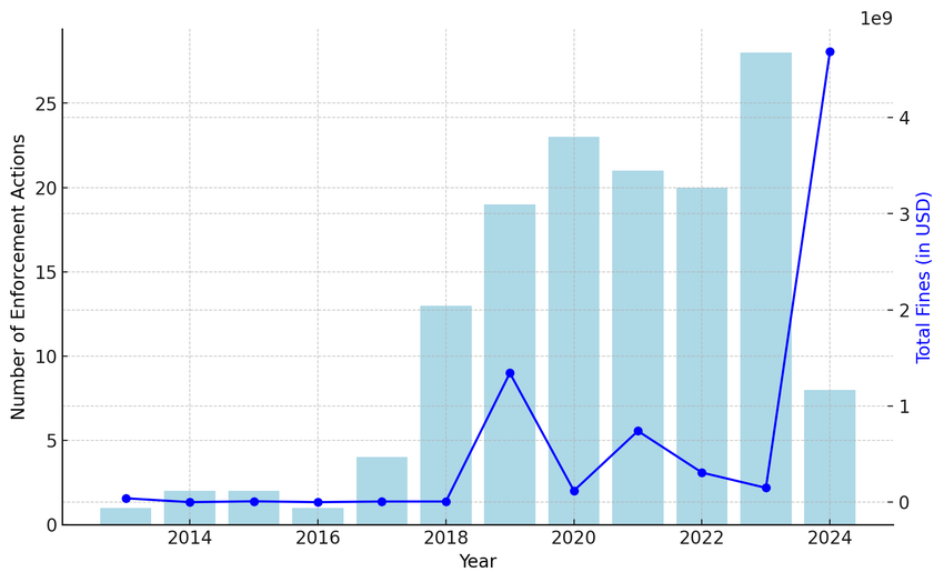 BeInCrypto melaporkan bahwa per 10 September, komisi telah mengenakan denda sebesar US$4,68 miliar dalam kasus terhadap perusahaan kripto dan eksekutifnya pada tahun 2024. Jumlah rekor ini menunjukkan peningkatan sebesar 3.018% dibandingkan dengan denda yang dikumpulkan pada tahun 2023.