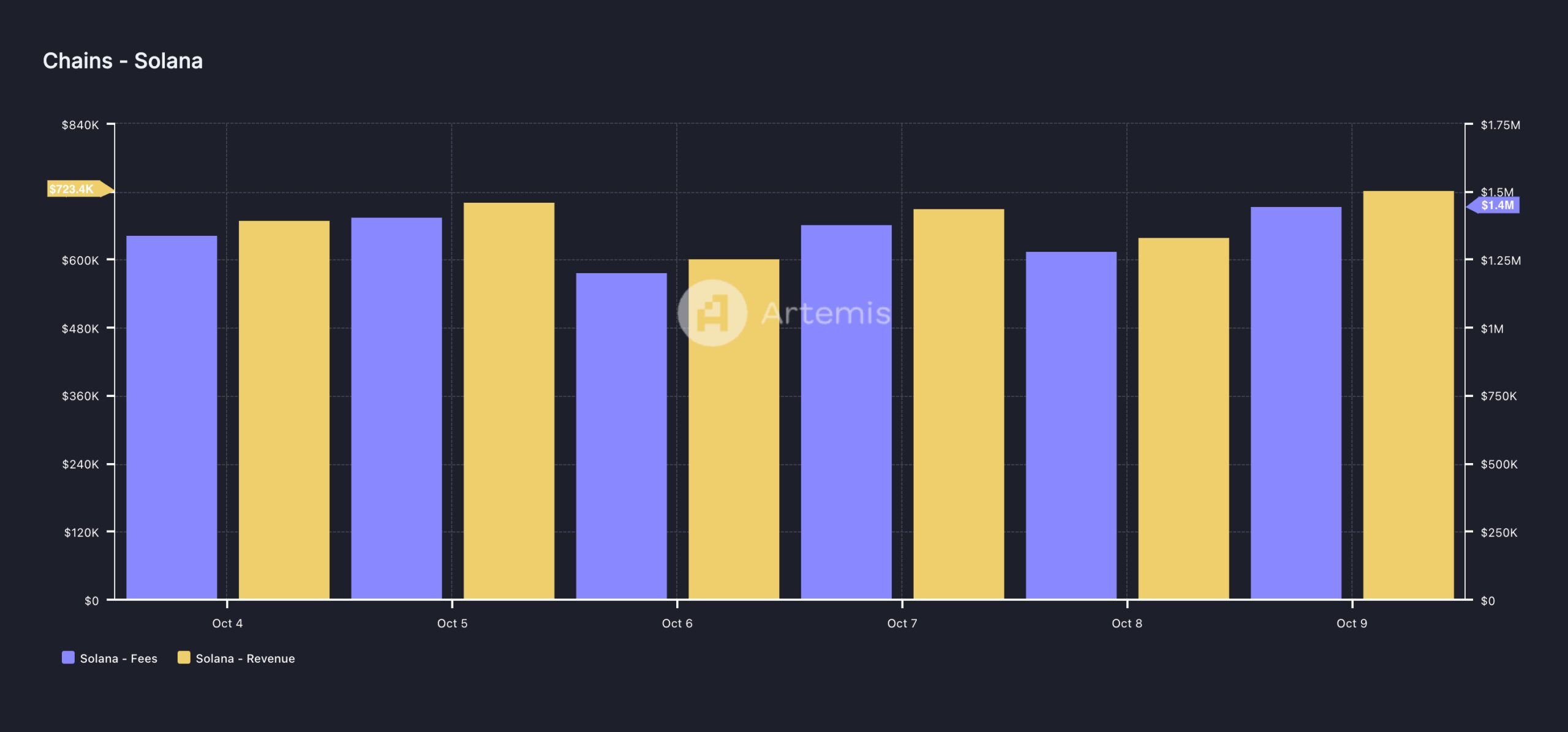 SponsoredSeperti yang diharapkan, lonjakan permintaan Solana telah memengaruhi biaya jaringan dan pendapatannya. Per data Artemis, total biaya dan pendapatan Solana telah melonjak sebesar 8% selama seminggu terakhir.