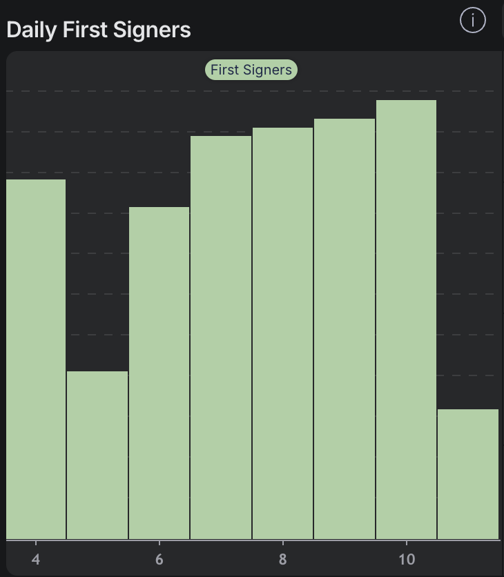 Sejauh bulan ini, Solana telah menarik banyak pengguna baru. Data Hello Moon telah mengungkapkan peningkatan 15% dalam jumlah harian penanda tangan pertama unik yang bertransaksi di Jaringan Solana.