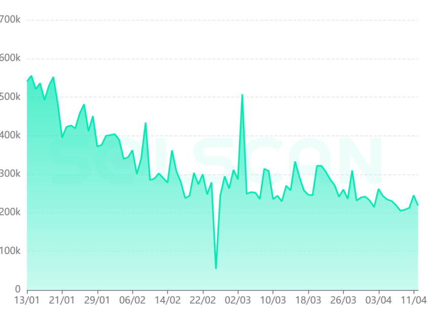 Menurut platform analitik Solscan, jumlah wallet aktif Solana tercatat telah turun sebesar 60% dalam tiga bulan terakhir.
