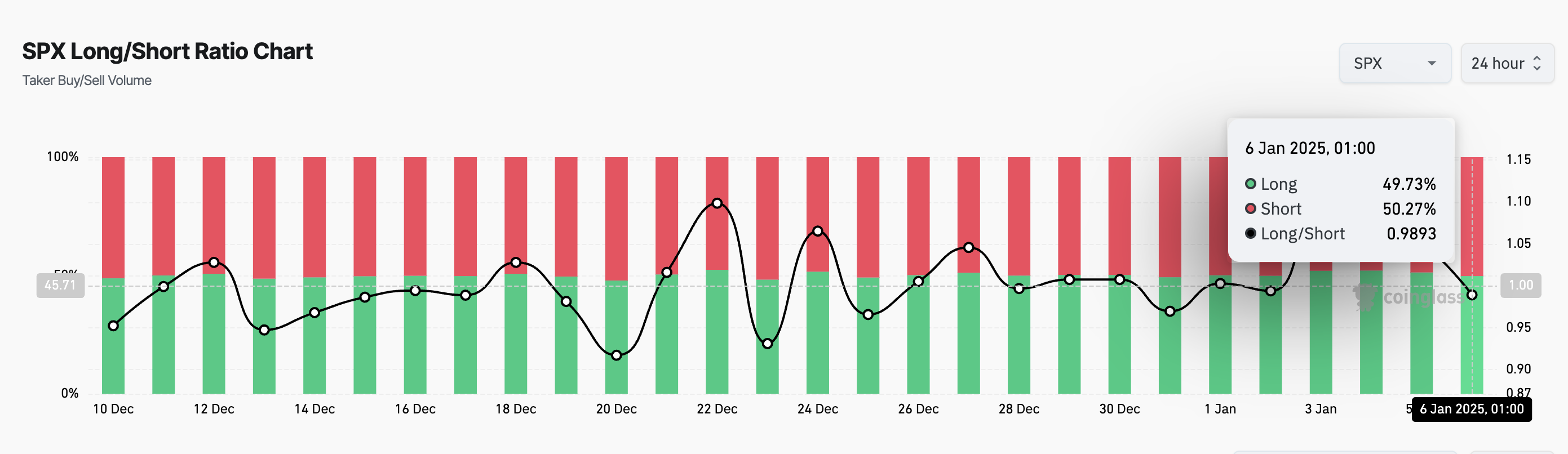 Namun, sentimen bearish yang berkembang terhadap altcoin ini dapat menciptakan hambatan dalam jangka pendek. Meskipun harga naik, trader SPX futures mulai memasang taruhan pendek dengan harapan harga akan turun. Hal ini tercermin dalam Long/Short Ratio-nya, yang berada di angka 0,98 pada saat publikasi.