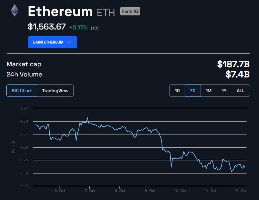 SponsoredSaat penulisan, ETH diperdagangkan stabil di angka US$1.561, setelah mengalami penurunan sekitar 5% dalam seminggu terakhir.