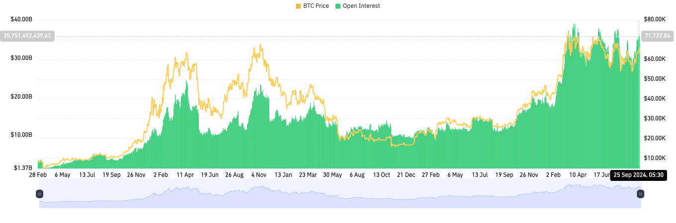 Siklus pasar saat ini juga menyoroti meningkatnya perdagangan leverage di antara trader kripto. Data dari Coinglass menunjukkan bahwa open interest berada di US$35,93 miliar, mendekati tertinggi empat tahunannya.