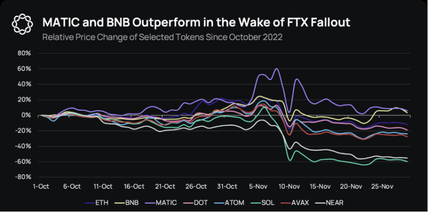 Namun, pada tanggal 30 November, Delphi Digital memberitakan bahwa MATIC dan BNB telah berhasil unggul dari aset kripto lainnya.