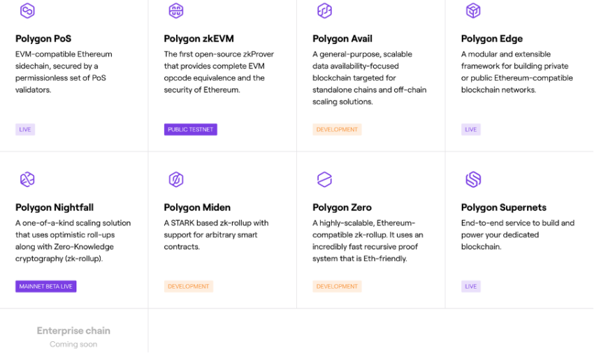 Selain itu, Polygon juga sering dianggap sebagai ‘internet of blockchain’ untuk Ethereum dan menggabungkan berbagai blockchain yang bisa penggunanya pilih dengan leluasa. Solusi tersebut adalah sebagai berikut: