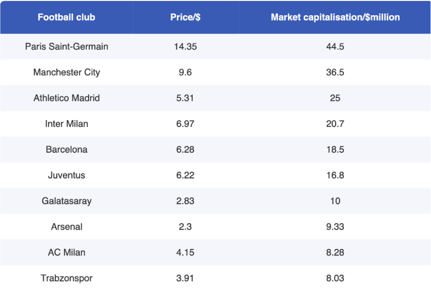 Beberapa di antara kolaborasi antara sepak bola dan aset kripto pertama yang terkenal berasal dari klub sepak bola ternama seperti Paris Saint-Germain, Manchester City, Barcelona, dan Juventus, yang bermitra dengan platform kripto Socios.