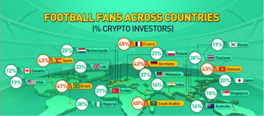 Empat dari setiap sepuluh investor kripto di negara-negara ini menggolongkan diri mereka sebagai penggemar sepak bola.