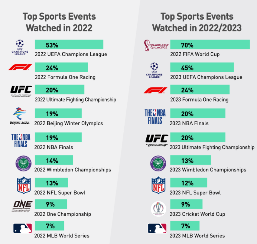 Secara keseluruhan, 70% investor kripto memantau hajatan sepak bola terbesar tersebut, dan menjadikannya sebagai acara pertama dalam daftar Acara Olahraga Terpopuler yang ditonton pada tahun 2022/2023.