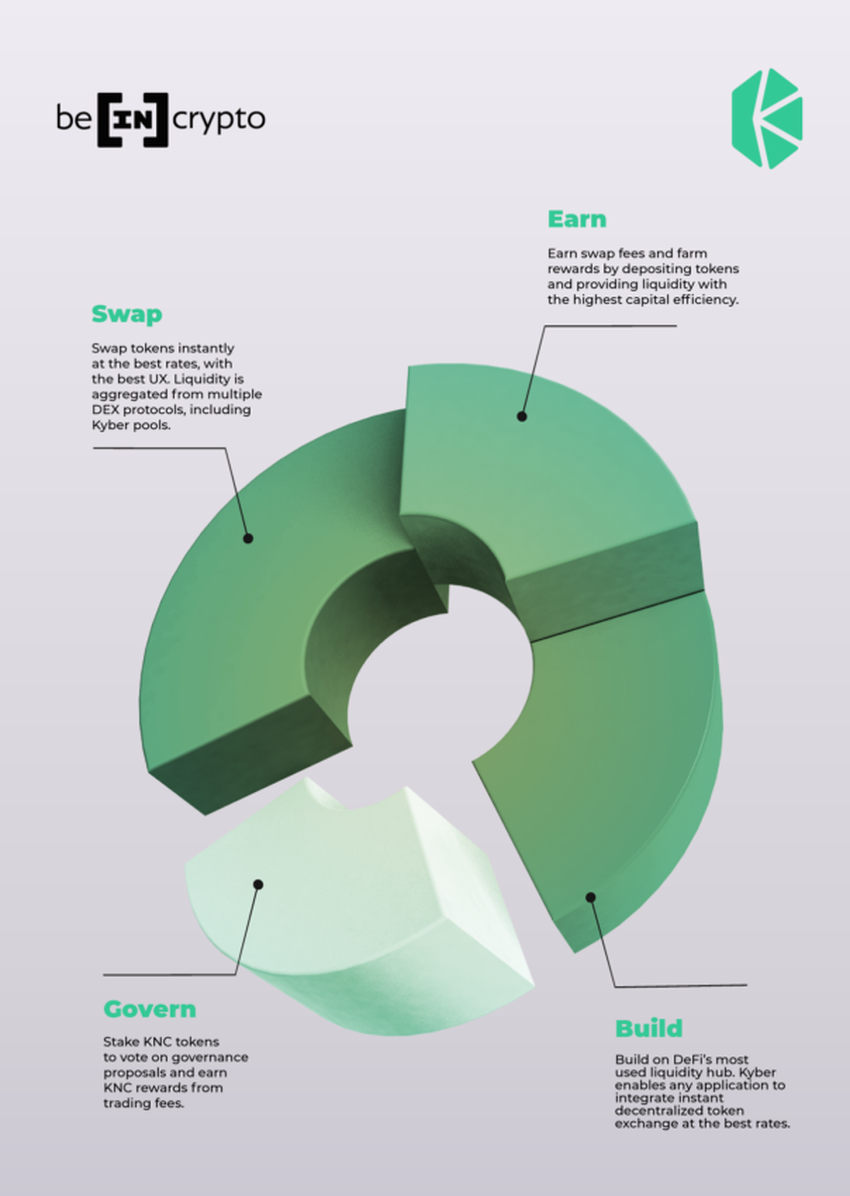 Melalui DEX aggregator dan liquidity protocol unggulannya, KyberSwap.com, Kyber Network menghubungkan likuiditas dari berbagai sumber untuk memungkinkan perdagangan token instan dengan nilai tukar dan keuntungan terbaik bagi para liquidity provider.