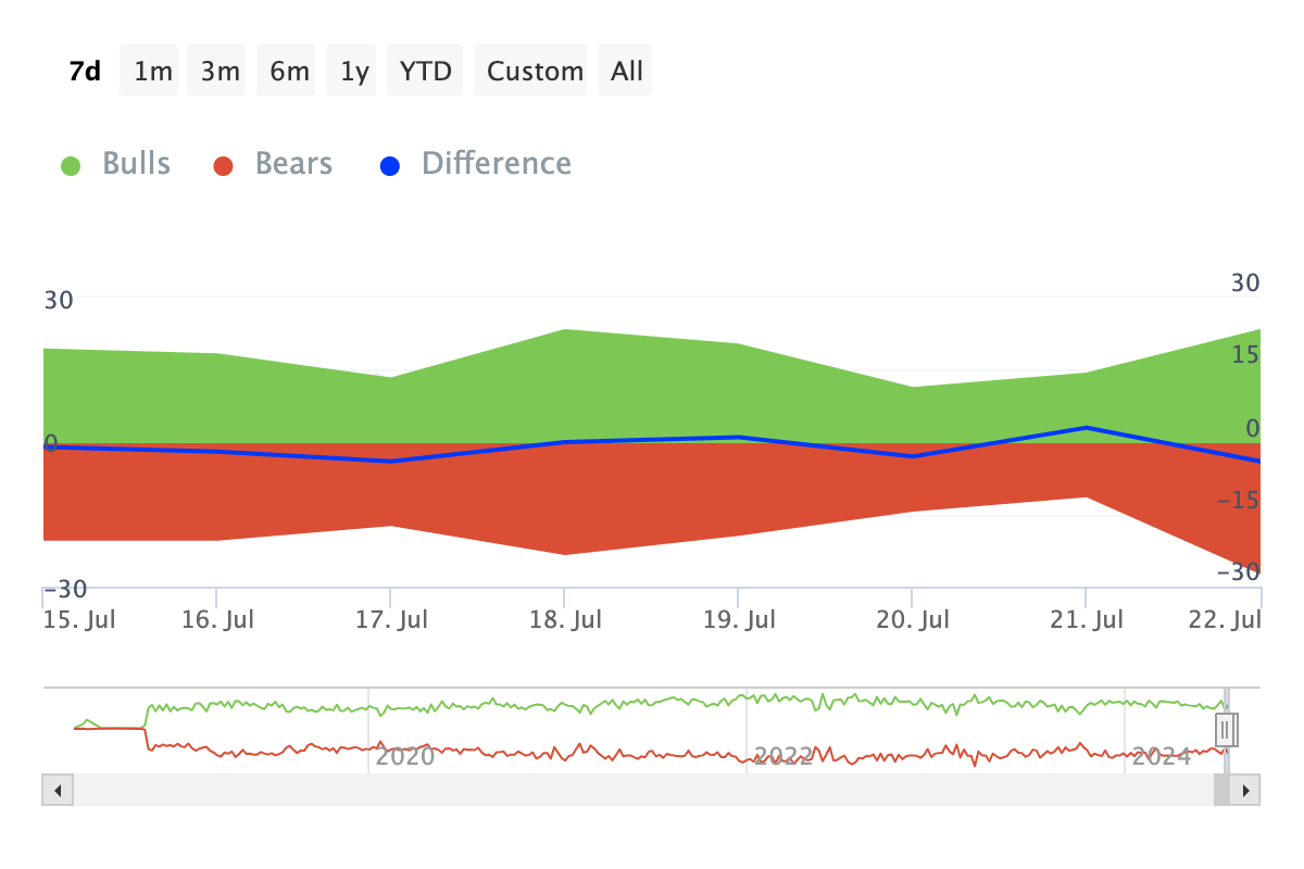 Hal ini karena ada lebih banyak bull ketimbang bear. Secara sederhana, bull adalah pelaku pasar yang terlibat dalam pembelian 1% dari total volume perdagangan. Di sisi lain, bear adalah mereka yang terlibat dalam penjualan rasio yang sama dari aset kripto tersebut.