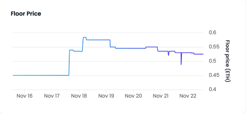 Namun, akibat koreksi harga Ethereum (ETH) serta minat yang lesu, harga dasarnya saat ini bertengger di level 0.52 ETH (saat ini ~US$570) di OpenSea.