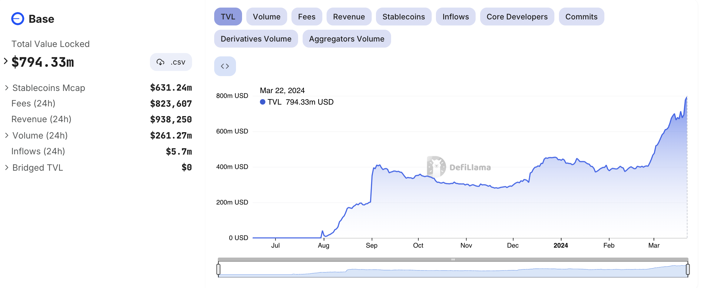 Kenaikan signifikan Base sangat mengesankan, dengan rekor total value locked (TVL) sebesar US$794 juta. Ini mewakili peningkatan mingguan sebesar 19,62%, melebihi pertumbuhan Solana sebesar 10,54%. Meski begitu, Base masih berada di belakang Solana yang memiliki TVL sebesar US$4 miliar dan volume sebesar US$2 miliar.