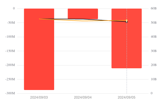 Meskipun pasar AS tutup pada hari Senin, arus keluar besar-besaran kembali terjadi setelahnya. Pada hari Selasa (3/9) saja, ETF Bitcoin spot mencatat arus keluar bersih sebesar US$287,78 juta.