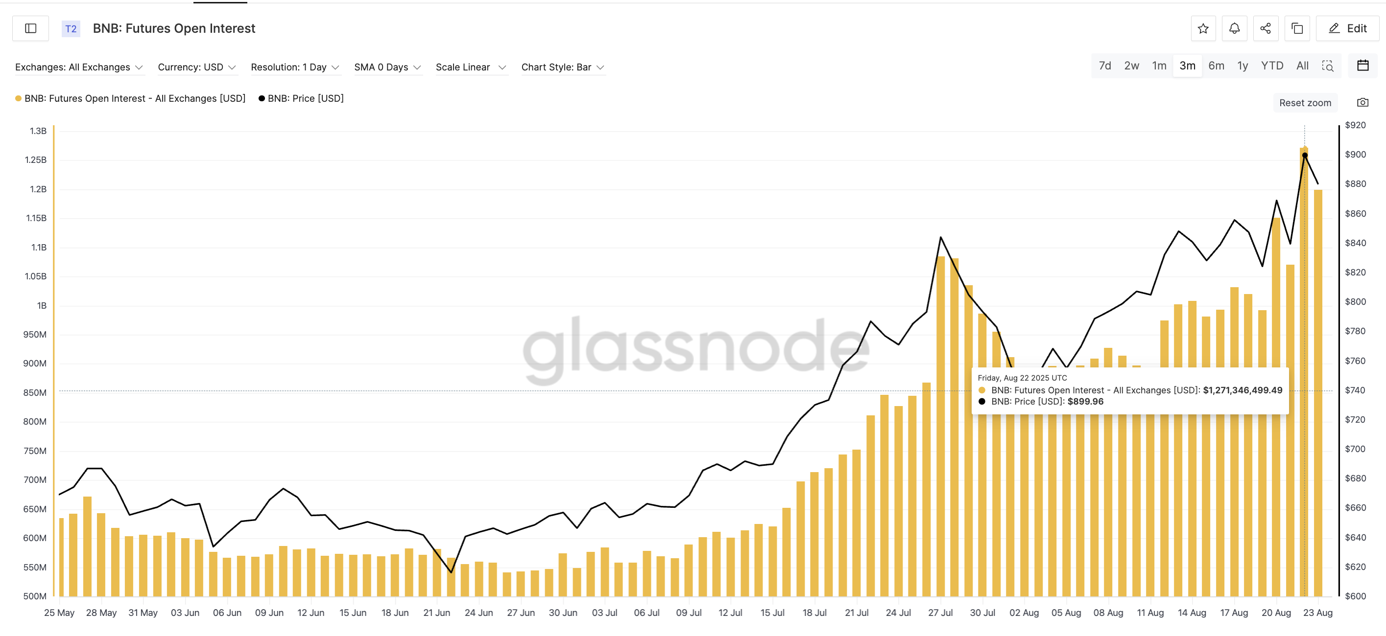 Bukan hanya pasar spot yang mendukung reli ini. Open interest BNB futures telah naik secara stabil seiring dengan harga, mencapai puncak tiga bulan di US$1,27 miliar pada 22 Agustus. Level saat ini masih berada di zona yang sama.