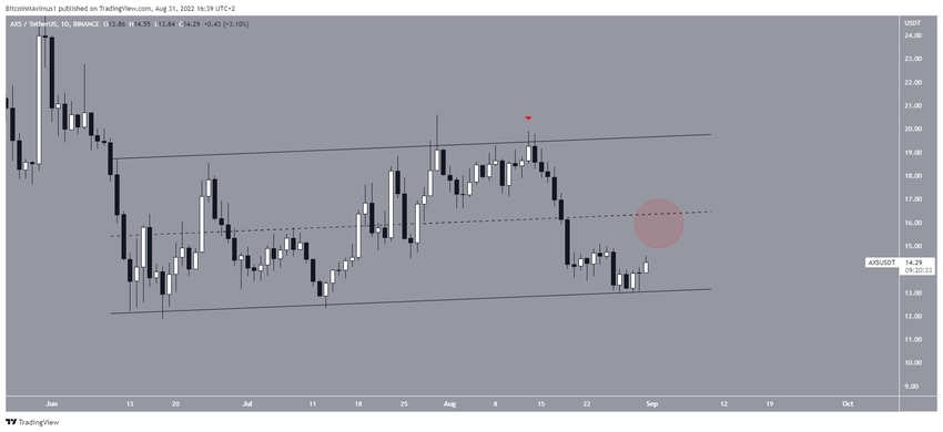 Sejak tanggal 13 Juni, AXS telah diperdagangkan dalam ascending parallel channel. Baru-baru ini, AXS mendapat penolakan dari garis resisten channel tersebut pada tanggal 13 Agustus (ikon merah) dan terus anjlok sejak saat itu. Tapi, kali ini AXS sekali lagi berhasil memantul ke garis support channel tersebut.