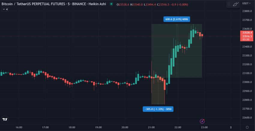 Tak lama setelah pidato Powell tersebut, harga Bitcoin (BTC) sempat sedikit melemah ke bawah level US$23.000. Namun, setelahnya harga Bitcoin naik menjadi di atas US$23.500. Hal ini nampaknya lantaran pasar mengesampingkan prospek kenaikan suku bunga lebih lanjut di tahun 2023, kendati dengan laju yang lebih lambat.