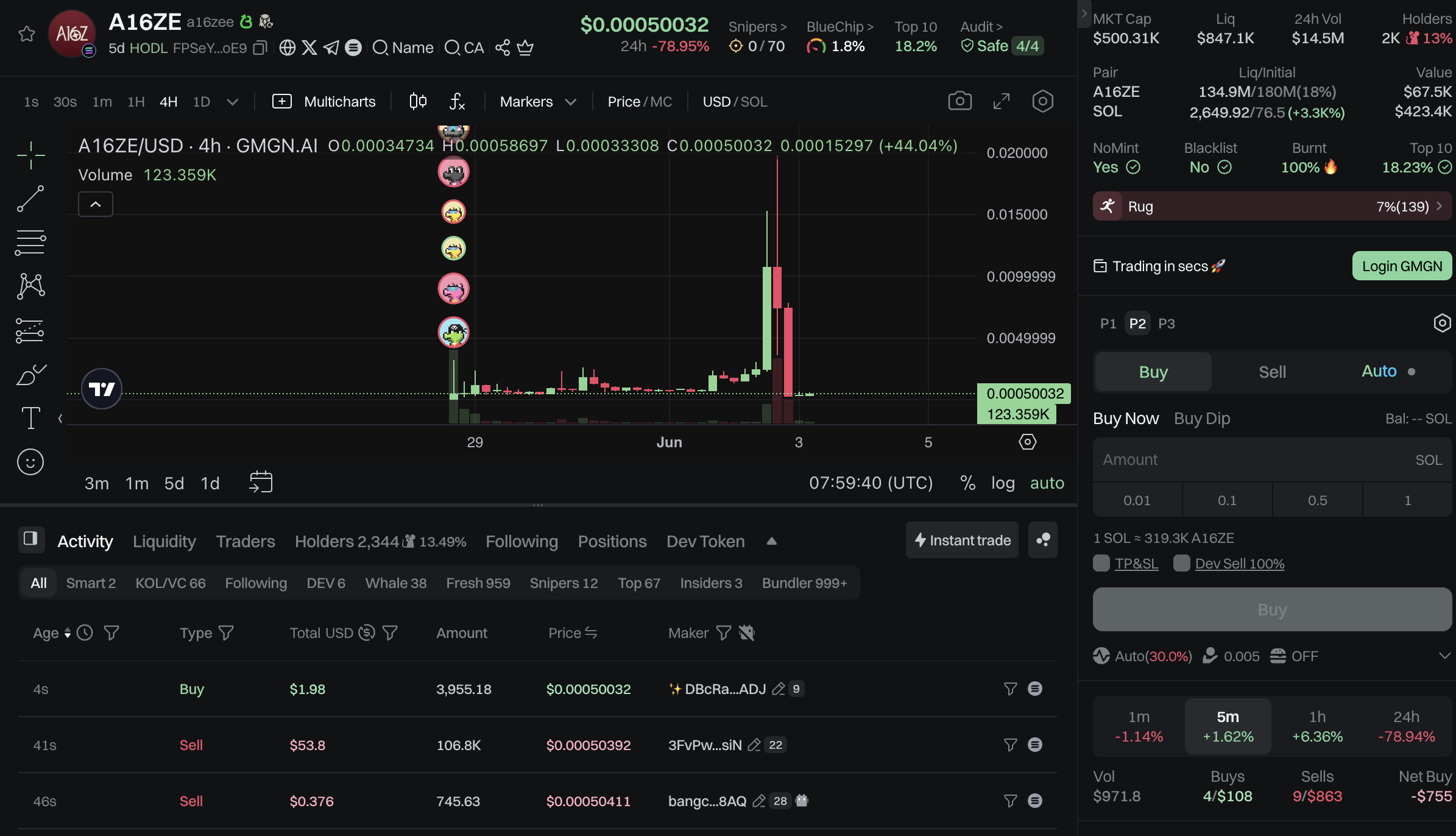 Segera setelah pengumuman ini, kapitalisasi pasar A16ZE anjlok, kehilangan hampir seluruh nilainya. Data dari GMGN menunjukkan kapitalisasi pasarnya menyusut menjadi hanya beberapa ratus ribu dolar pada waktu publikasi.
