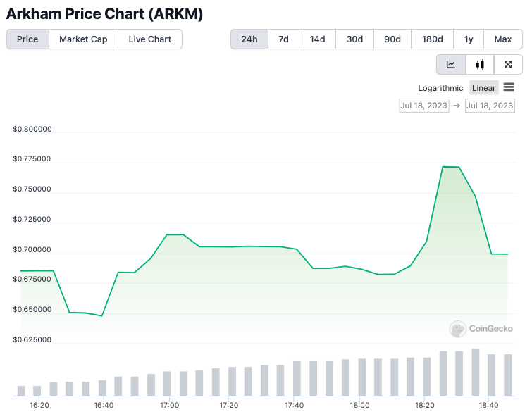 Pada hari ini juga, Binance mulai me-listing token ARKM di platform perdagangan aset kripto mereka sekitar pukul 19:00 WIB.