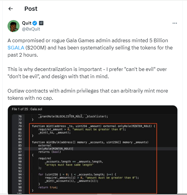 Peretasan yang baru saja Gala Games alami diperkirakan akan menjadi salah satu insiden eksploitasi terbesar yang terjadi di industri kripto tahun ini. Pelaku sukses mencetak atau minting 5 miliar token GALA dari perbendaharaan, senilai US$208 juta, dan mulai menjual token ilegal tersebut dalam kurun waktu dua jam.