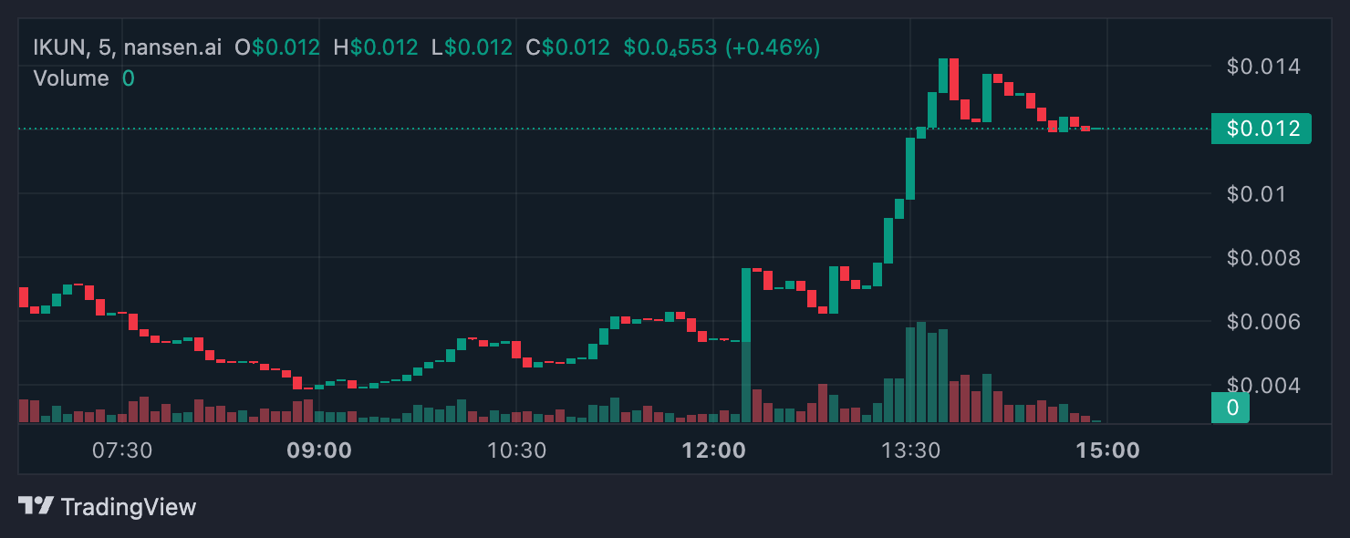 IKUN muncul sebagai salah satu token yang lebih aktif di Solana. Terdapat hampir 6.000 holder dengan kapitalisasi pasar lebih dari US$12 juta.