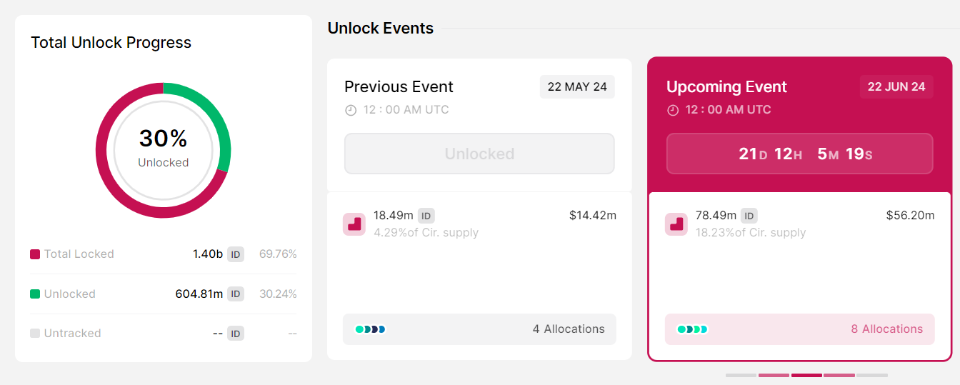 Adapun mengingat unlock ID yang akan datang ini bakal menambah sebesar 18,23% ke pasokan yang beredar, investor dan trader kemungkinan besar akan memantau unlock ini dengan cermat. Tujuannya tak lain guna menyaksikan bagaimana pengaruhnya ke aksi harga ID sendiri.