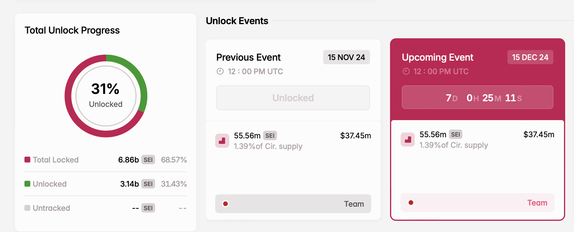 Pada 15 Desember, proyek ini berencana merilis lebih dari 55 juta token SEI yang dialokasikan kepada anggota timnya.