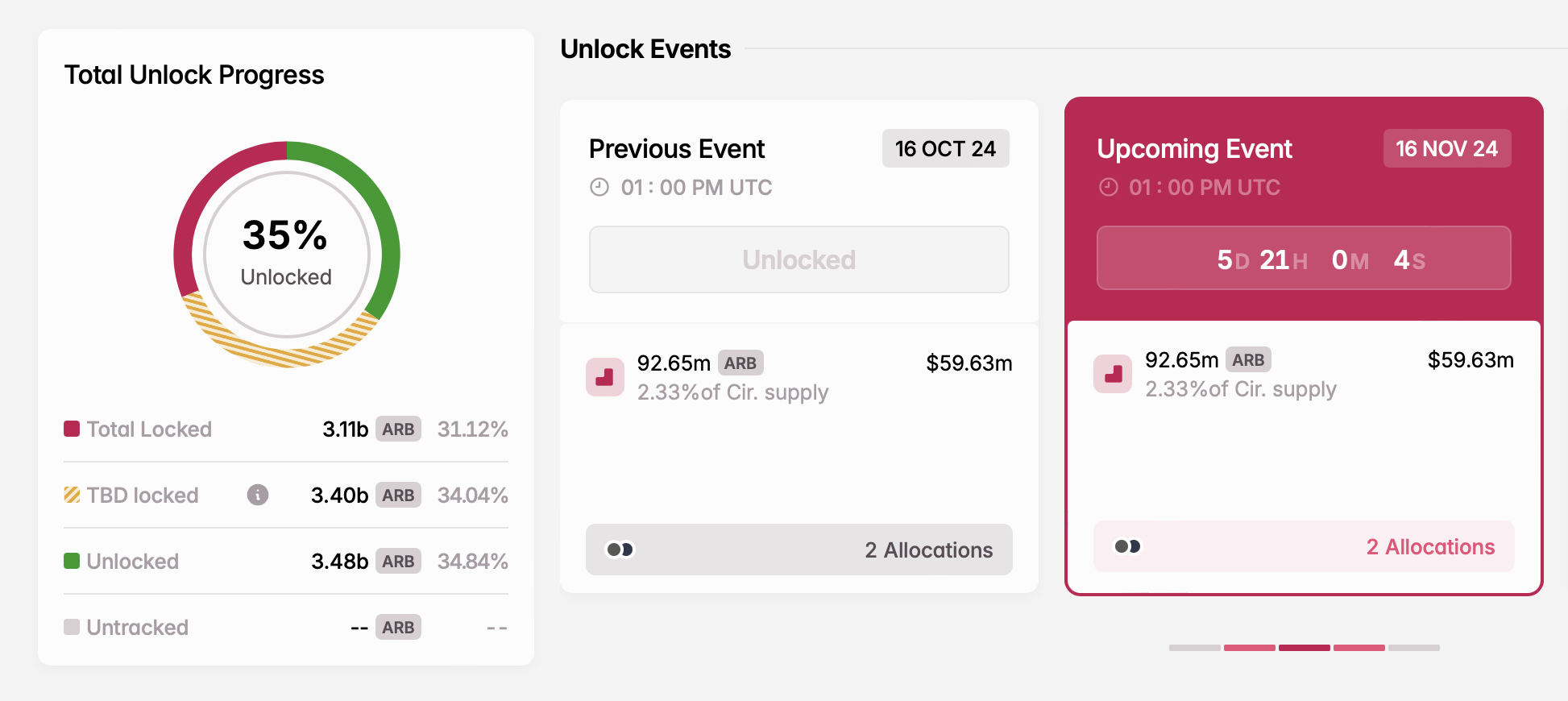 - Jumlah token unlock: 92,65 juta ARB