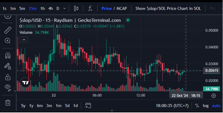 Saat debut, token SLOP di perdagangkan pada level US$0,00000775 dan saat ini berada di kisaran US$0,02422. Berdasarkan GeckoTerminal, jumlah holders SLOP juga terus bertambah menjadi 11,86 ribu dengan kapitalisasi pasar mencapai US$23,49 juta atau lebih dari Rp372 miliar.